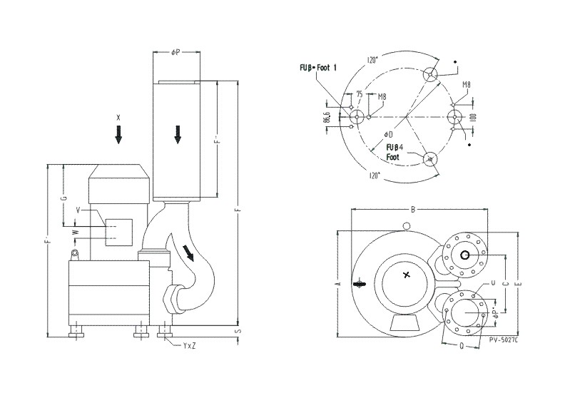 德冠品牌高壓風(fēng)機尺寸表:
